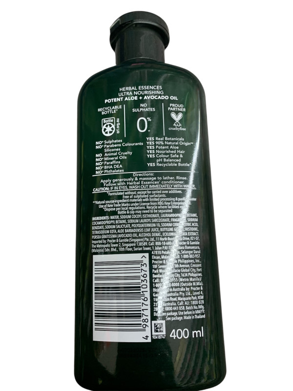 Herbal Essences is a ultra nourishing shampoo with natural ingredients of potent Aloe vera and Avocado oil. Herbal Essences is compleately Sulphate free and 0% of Silicones, Parabens, Colourants.